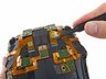 After adios-ing four Phillips screws and doing a little investigative prying, we lift away the display cover for access to one of the twin Samsung-branded AMOLED panels.