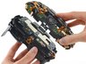 Note in second photo of step 24 that there are what I'm guessing are laser diodes mounted co-axially opposite the motors, and that the top view of the motor barrel looks hollow. It would make sense to do it this way there is then no need to get power to a spinning component - the spinning part is entirely passive.