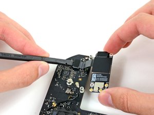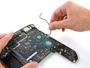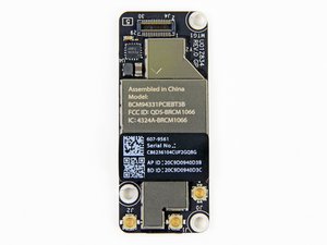 The Wi-Fi board, labeled BCM94331PCIEBT3B, stands no chance against our spudger as we make it truly wireless.