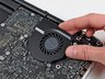 After removing the two cooling fans and disconnecting many connectors, the logic board and DC-In board can be removed as one piece.