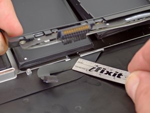 We tried valiantly with our iFixit 6 Inch Metal Ruler to free the battery from its aluminum confines, but to no avail. Rather than risk puncturing a lithium-polymer battery cell, we left the power source in place.