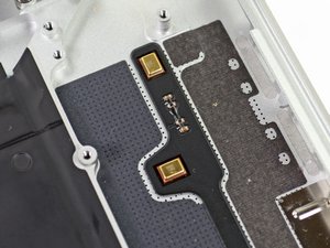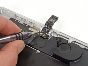 To complicate matters further, the TrackPad cable lies underneath the battery. Attempting to pry the battery off the upper case could easily sever the fragile cable, which would be bad.