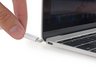 We finally disconnect the 3-in-1 display/power/I/O port cable that runs to the MacBook's lone USB-C port.