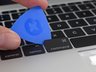Daunted by the pentalobe-packed rear panel, we opt for frontal access. The keys pop off easily enough and seem to simply snap in place.