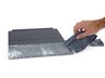 We call upon our iOpener to heat the microfiber lining, allowing us to delve further into the multiple layers of the Smart Keyboard cover panel.