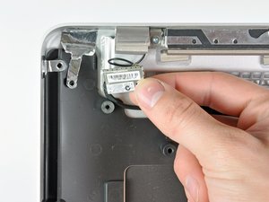 Disconnecting three antennas and removing a few screws allows the AirPort card to pop out of its socket.