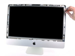 Thankfully, this iMac model opens in the same way as previous generations. All you have to do is pull off the magnetically-held display glass with two medium-size suction cups, and then remove the screws holding the LCD in place.