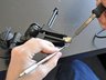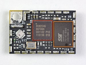 With the help of our trusty iFixit vise (which is made of the same material as our spudgers, and is ESD-safe), we're able to desolder the shield covering the little Bluetooth board to reveal the chip goodies underneath.