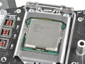 After popping off the CPU heat sink, we can get a good look at the Core i5 processor.