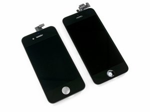 A side-by-side comparison of the iPhone 4 and iPhone 5 display assemblies. The iPhone 4s has an integrated home button.