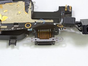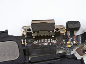 The Lightning connector assembly, which includes the headphone jack, loudspeaker, and lower microphone, comes out next.