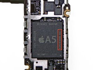 How 'bout a close-up of that Apple A5 chip? 1 GHz Dual-core processor with 512 MB of DDR2 RAM... Yowza.