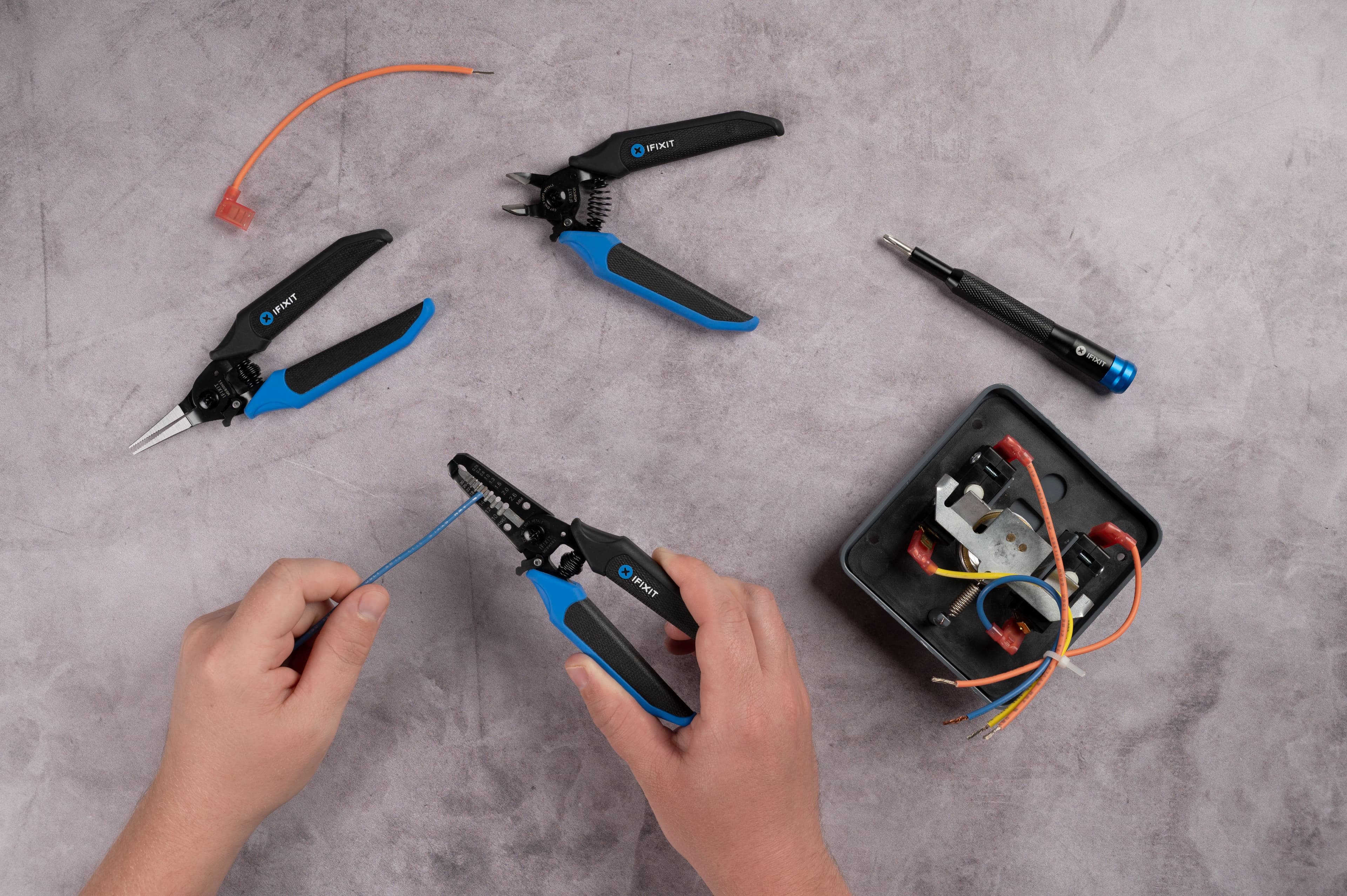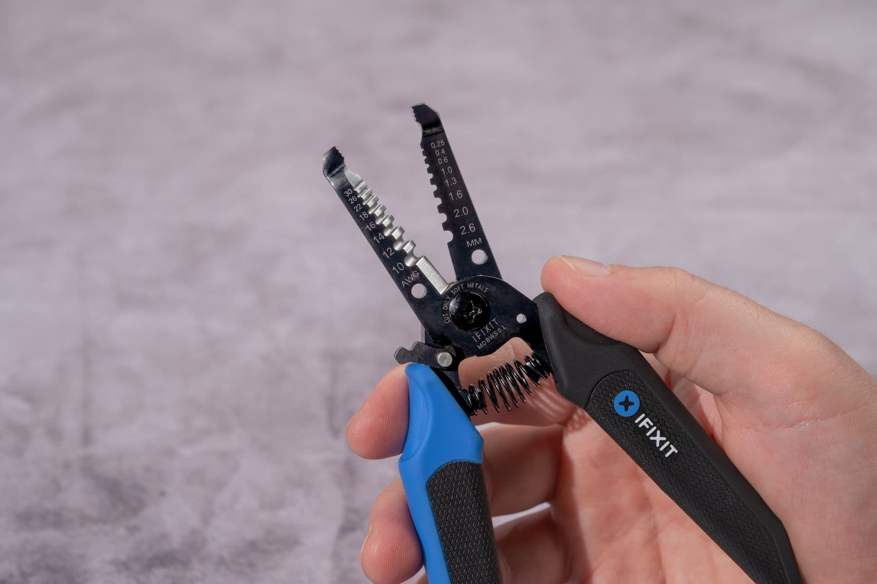 The iFixit Mandible Wire Strippers are designed to make stripping wires easy and accurate, offering a versatile range of wire gauges for various electronics repair tasks.